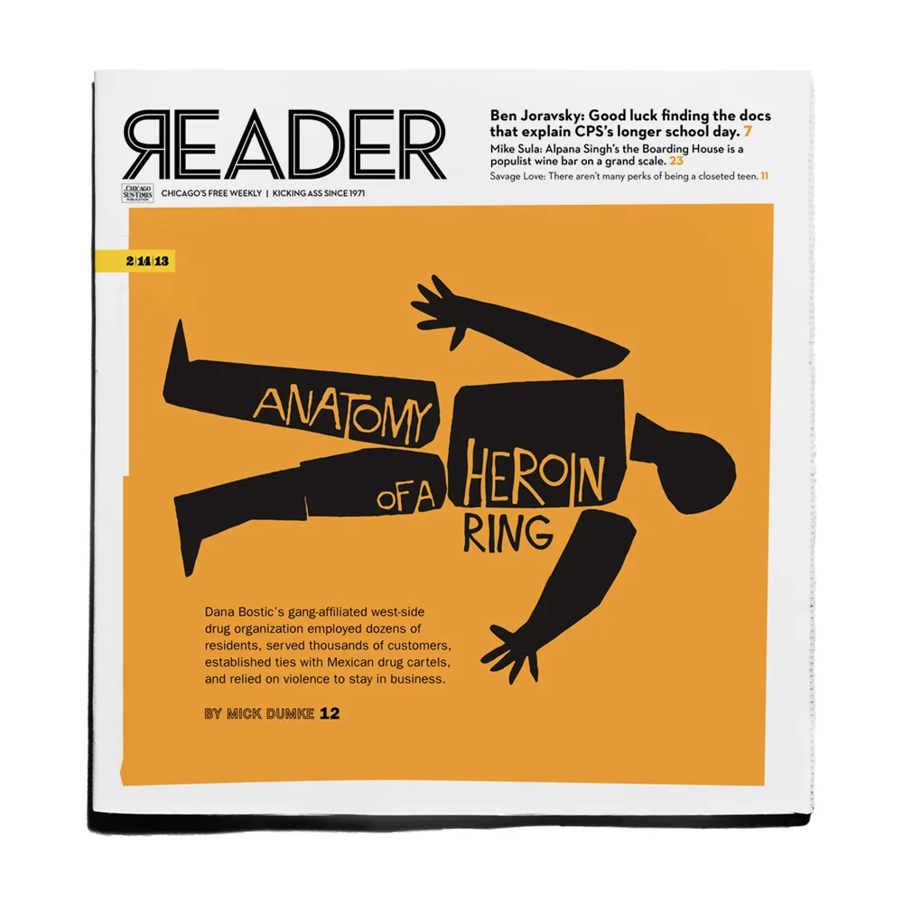 The Chicago Reader is a 50 year-old pioneering alternative newspaper in Chicago that specializes in long-form journalism, social justice reporting, and arts coverage. During my tenure* I art directed more than 500 covers and was promoted from Graphic Designer to Art Director, and later to the Creative Director position.